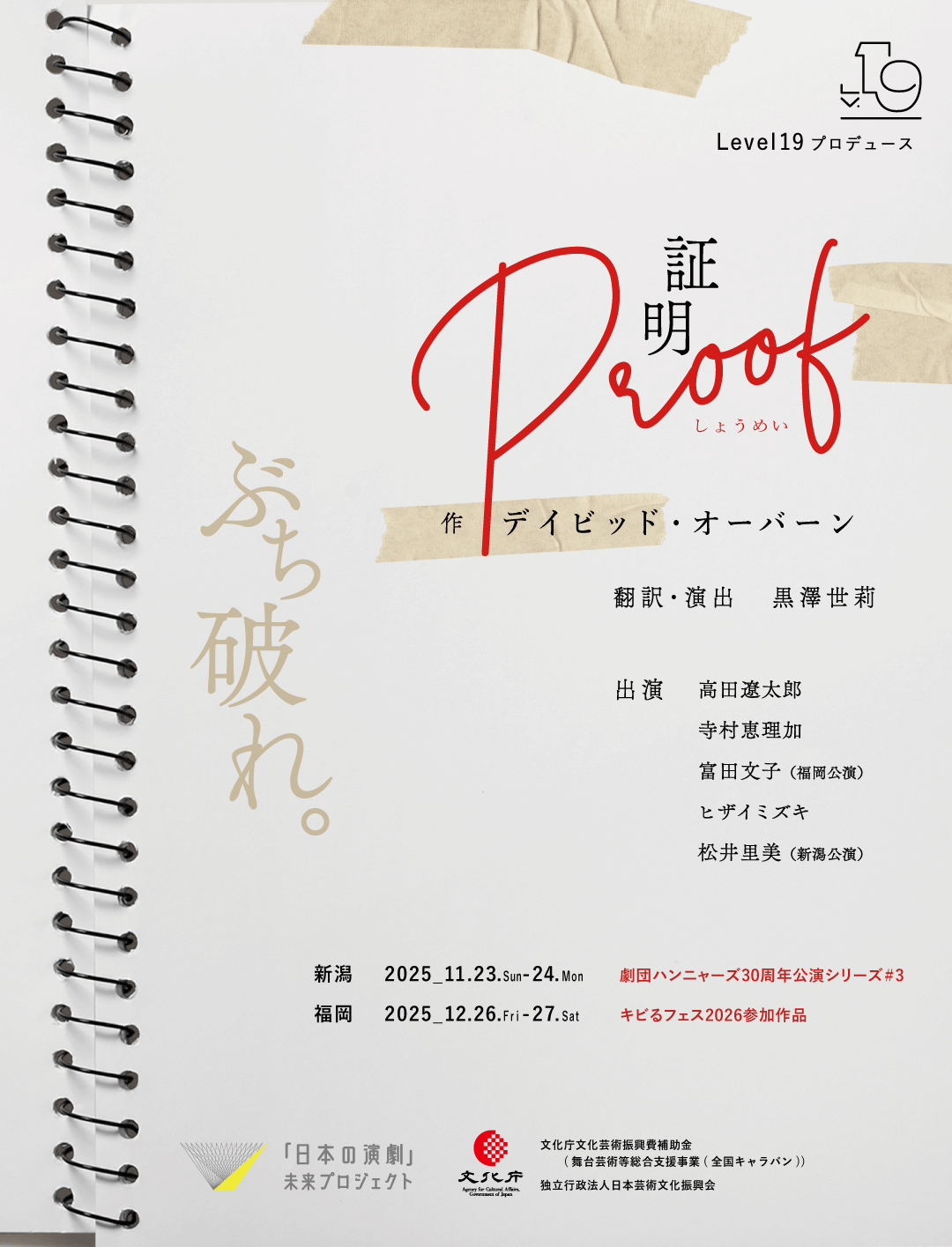 ピュリッツァー賞・トニー賞受賞の傑作戯曲『証明』(原題:Proof)。黒澤世莉の型破りな新訳と演出が、 新潟・福岡・東京の俳優たちとのクリエーションを経て描く最高の対話劇!