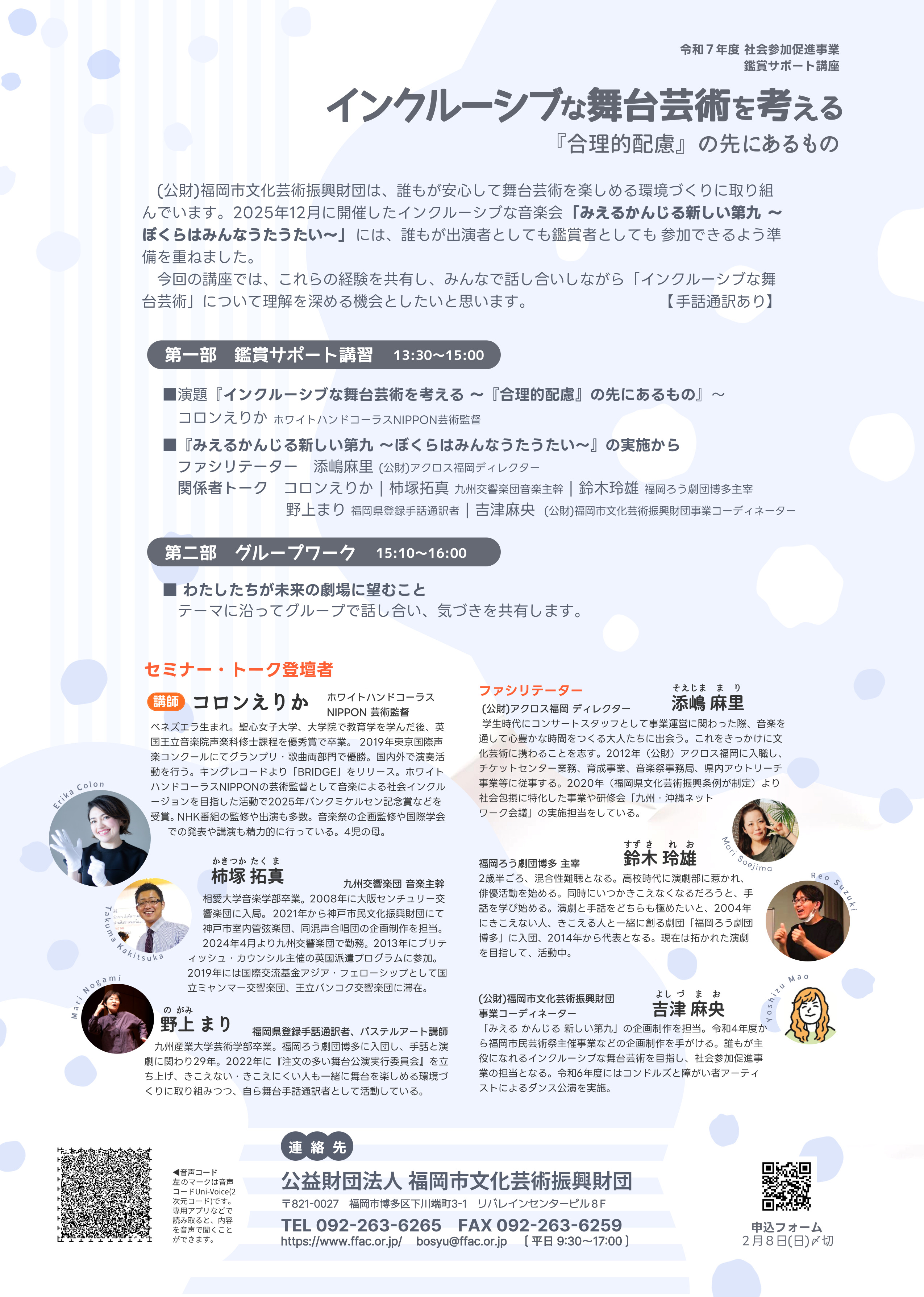 問合せ (公財)福岡市文化芸術振興財団 (平日 9:30~17:00)