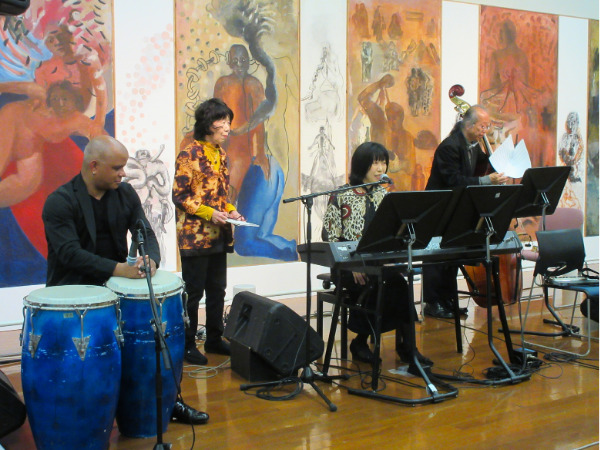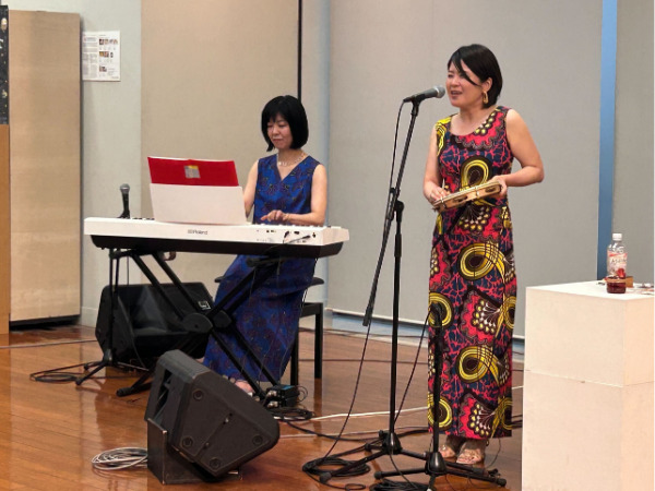 ブラジルの打楽器パンデイロ&ボーカルを担当する上野由美子さん、ピアニストの鎌田明日香さんのユニット、Bossa Sol。ボサノバやサンバなどブラジルの楽曲のほか、日本の童謡も披露されました。鎌田さんが弾く透明感のあるキーボードの響きに、上野さんのパワフルな歌声と軽やかなリズムが乗って、思わず体が動き出すようなパフォーマンスでした。