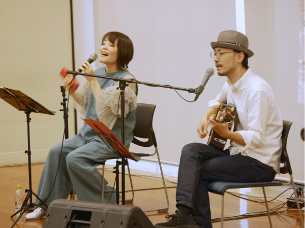 「じぐざぐづ」のCHOYOさん(キーボード)、竹田秋雲さん(ボーカル)が登場。ネオフォークという、どこか懐かしさと新しさを感じさせるオリジナル曲が披露されました。息の合ったお二人は、デュオプロジェクトとしては初のライブで、記念すべきステージとなりました。