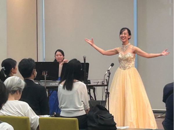 ソプラノ歌手・柳瀬史子さんとピアニスト・姫野華奈さんによるデュオ。マイクなしで歌うオペラとマイクを通して歌うミュージカルとの違いや、曲に込められた物語や場面などの解説を交えながら、著名な楽曲を披露されました。それぞれのジャンルの違いや、曲の背景を知ることで、より一層歌声に惹きつけられました。
