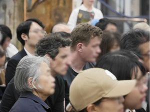 ピアニストの橋本芳さんと、バイオリニストの尾崎めぐみさんによるデュオ・SYMMETORIA(シンメトリア)。久保田早紀さんの「異邦人」やカーペンターズの「Close to You」など、お馴染みのポップスのほか、スイングを誘うジャズ演奏もあり、会場をぐっと魅了しました。