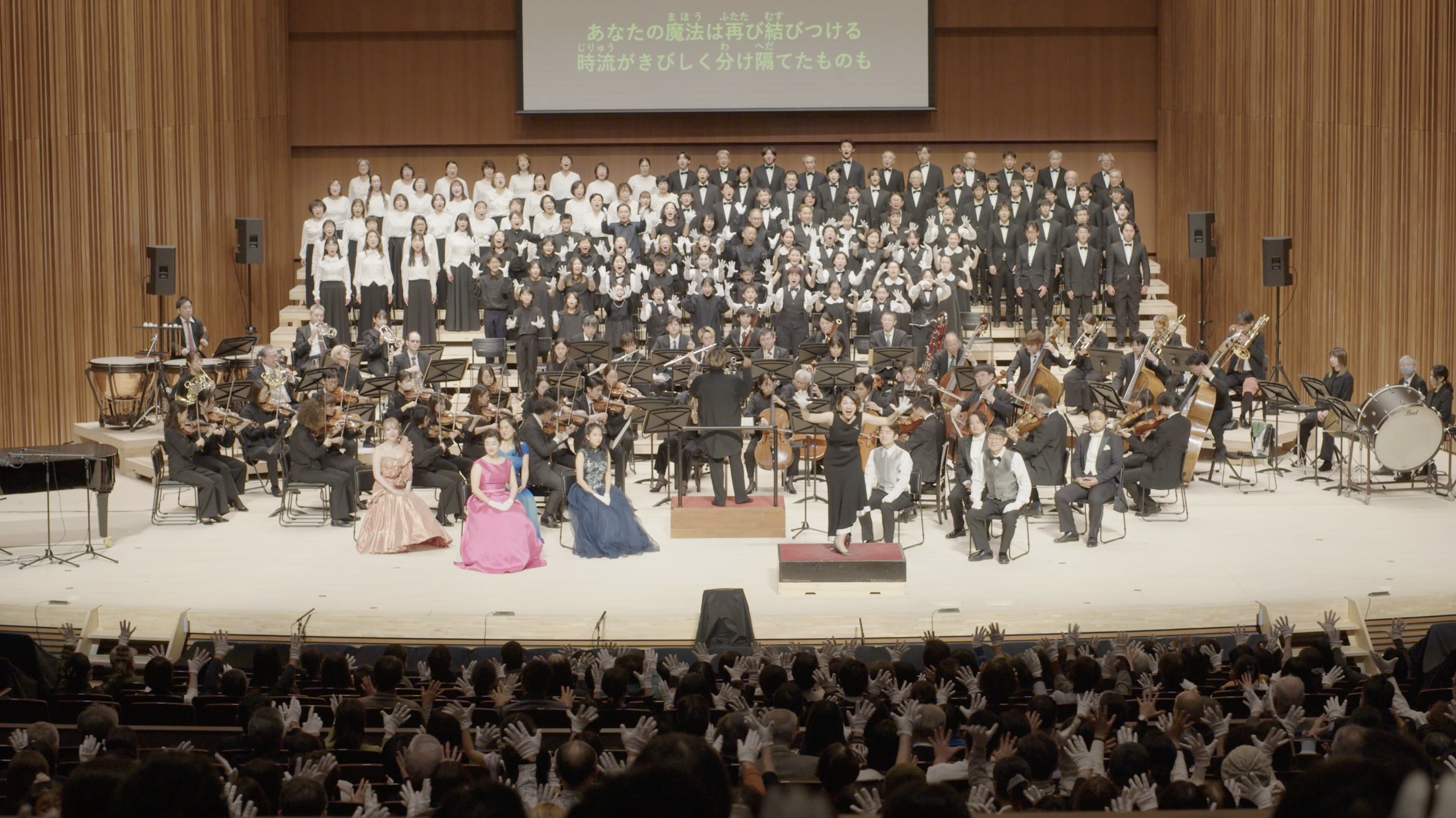 多様な出演者がステージ上で一つになる瞬間、来場時に配布した白い手袋を着け第一部の手歌ワークショップで習った手歌で客席も“歓喜の歌”を共に奏でました。まさに会場全体が一つになって歓びが響き渡りました。