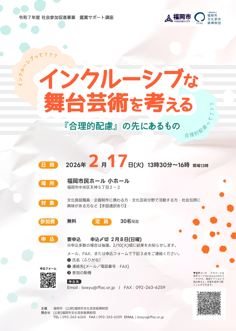 令和8年度第63回福岡市民芸術祭参加行事募集!