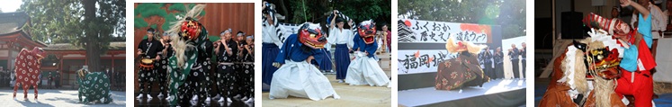 <獅子舞> 香椎宮奉納獅子楽、今宿青木獅子舞、宇田川原豊年獅子舞、元岡獅子舞