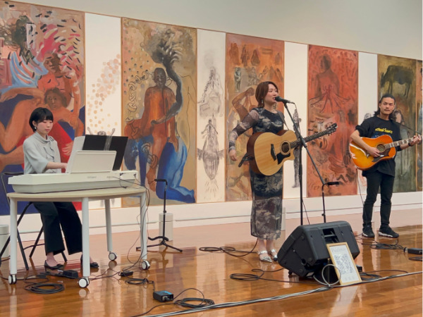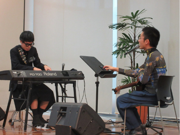 「じぐざぐづ」のCHOYOさん(キーボード)、竹田秋雲さん(ボーカル)が登場。ネオフォークという、どこか懐かしさと新しさを感じさせるオリジナル曲が披露されました。息の合ったお二人は、デュオプロジェクトとしては初のライブで、記念すべきステージとなりました。