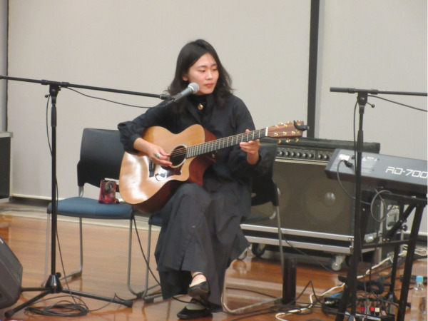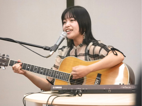 シンガーソングライターの春夏(はるか)さんが登場。ギターの弾き語りによるポップなナンバーでスタートし、マイクを手に立ち上がるとリズミカルなバックトラックに合わせて熱唱。続いてキーボードを弾きながら、しっとりとしたバラードを歌い上げました。オリジナル曲の物語に合わせてスタイルが変わる、魅力的なパフォーマンスでした。