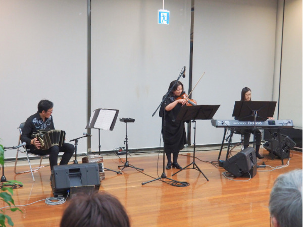今年度ラストは、ヴァイオリンとピアノ、バンドネオンによるタンゴトリオ「Los Chiflados(ロス・チフラードス)」が出演。アルゼンチンタンゴを中心に、ヨーロッパ生まれのタンゴも演奏。ダイナミックで情熱的な曲や郷愁を誘うバラード風な曲などバラエティに富んだタンゴが演奏されました。踊りを誘うタンゴのリズムに会場は盛り上がり、アンコールで今年度の「Live@Museum」堂々のフィナーレとなりました。