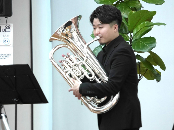 ユーフォニアム奏者の井手優成さんが登場。梅雨にぴったりのショパン作曲「雨だれ」や、アンダーソン作曲のかわいらしい「おもちゃ箱」のほか、映画音楽やポップスなどを演奏。ユーフォニアムならではの柔らかく温かみのある音色で観客を包み込みました。