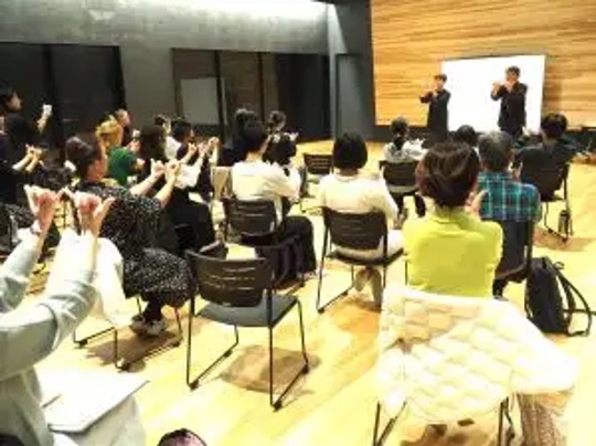 第二部・第4楽章でのお客様参加パートに向けて、コロンさんによる手歌ワークショップを実施。たっぷり練習しました。