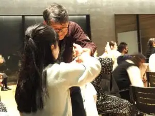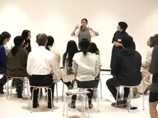 また、東京のホワイトハンドコーラスサイン隊のメンバーで、福岡公演でもソリストとして登場する信太美紗生さんも参加。手や体の動きで伝える表情の豊かさは、まさに圧巻でした。そして手歌の指揮を担うコロンえりかさんは、「第九」の歌詞と手歌の動きを丁寧に説明。「大事なのは動きを正確にすることじゃない。人生の喜びとか誰かとのつながりを思いながらめいっぱい表現してほしい」と強調、“音楽をつくる”新しい第九であることを伝えていました。